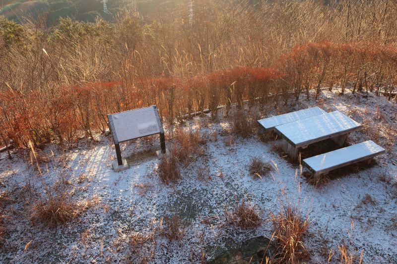 展望台の下に休憩に適したテーブルあり。