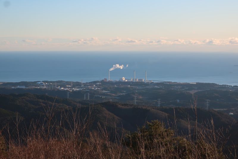 山頂付近は遊歩道が整備された公園になっています。遊歩道(作業道)を少し歩くと海が見える展望台があります。広野町を一望し、遠くは相馬沖やいわき方面まで眺められる絶好のビュースポットです。三角点は展望台の手前の小高い場所にあります。特に山頂看板は無いので見逃さないように。